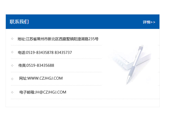 地址:常州市新北區友邦商務大廈1幢16、17層  電話:0519-85101652  傳真:0519-85112595  郵編:213022  網址:www.cz-jiayue_cn.dayoubzj.com  郵箱:xiajifengaa@163.com